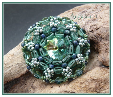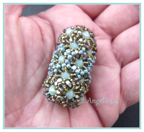 ich hab sie ohne Innenperle gemacht, sie ist stabil genug. Nicht sehr schwer, aber aufwendig zu fädeln. Und farblich mal was völlig anderes.... Tohos in grau-grün-goldig und hellblau gemarbelt , die Facetten waren aus dem Fundus  und die Bicone sollten pacific opal sein...