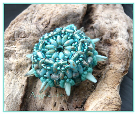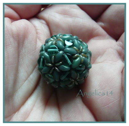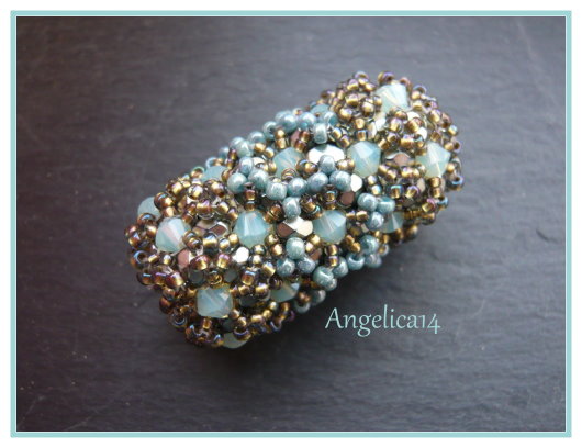 während ich auf das Laden all der Feeds und Mails gewartet habe, hatte ich noch genug Zeit, die kleine Perle hier zu fädeln. Ist die jetzt zu schnell zu machen oder habe ich zu viele Feeds? Egal, das dauerte ne halbe Stunde. Ich hatte die Perle in einem meiner feeds gesehen ( sic). Ich glaube, sie ist von Puca.  Kommt jetzt in mein Mintcollier.