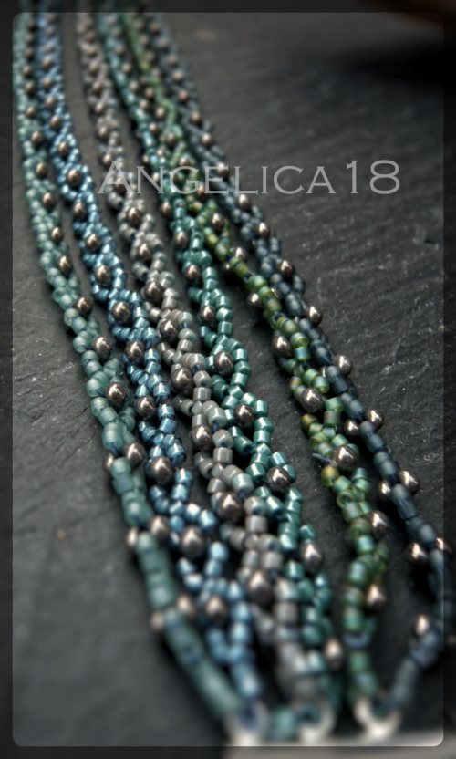 ich hab noch so viele Lampworks, die sind sicherlich jetzt so acht , neun Jahre her. Und zu schade zum rumliegen. Und jetzt habe ich die mit den tschechischen Hybriden in Braun und ganz viel Inspiration von meinem Lieblingsbuch Bead Play Love zu einer kleinen, feinen Kette gefädelt.