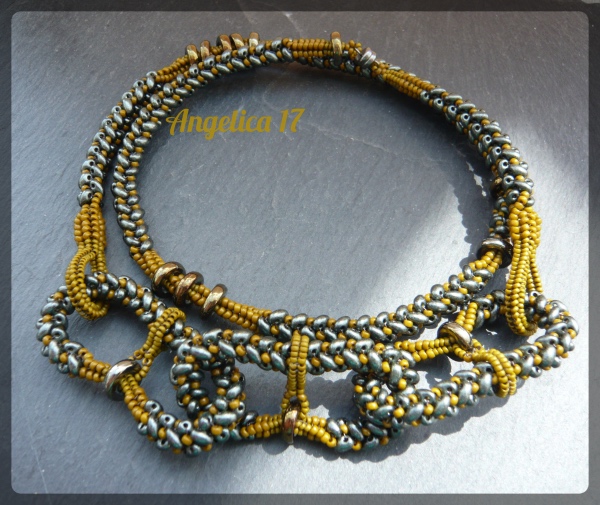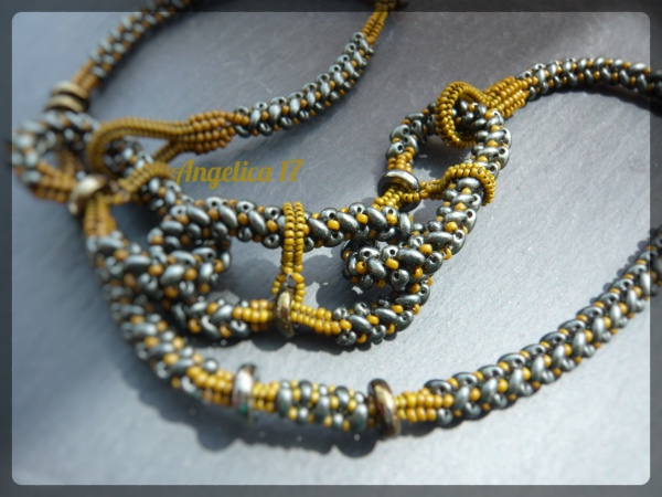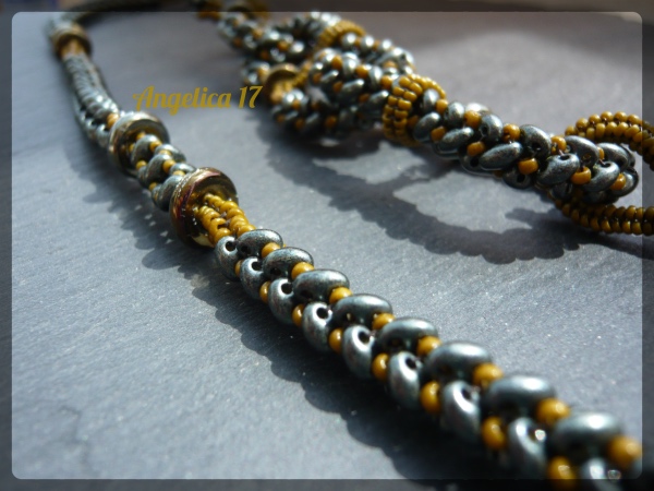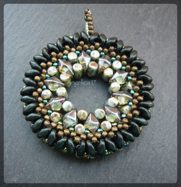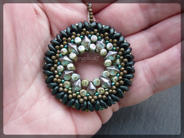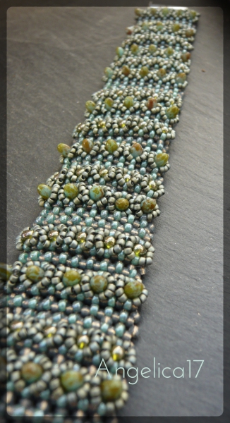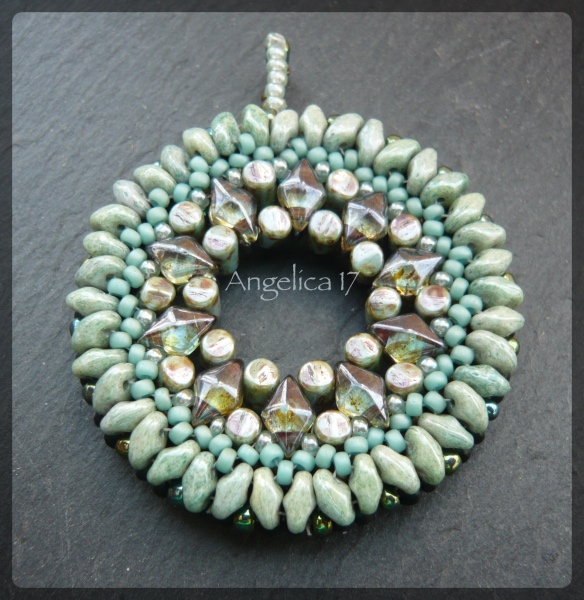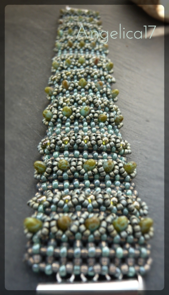 ich fand die neuen Miyukifarben so schön und dieses dunkle Grün von den Twins genauso , also hab eine Kette runtergefädelt, grade so wie es kam. Und natürlich in Herringbone, was sonst.