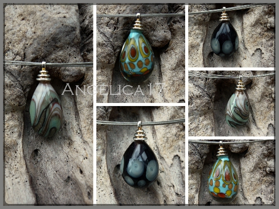 die habe ich mal vor ca fünf Jahren gemacht und dann auch in die Anhänger gekittet. Und als ich jetzt grade Ketten gebaut habe aus Edelstahldraht, habe ich gedacht, gönnst Du Ihnen mal ein weiteres Leben als Anhänger.